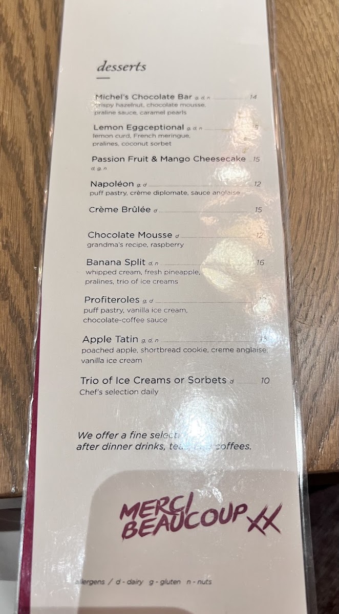 As the meal approaches its sweet conclusion, guests are encouraged to indulge in desserts that are nothing short of heavenly. The Michel's Chocolate Bar, drizzled with a tangy raspberry sauce, and the classic Creme Brulee, with its crackling sugar crust, create an exquisite finale to your dining experience. Customer reviews emphasize that the Mango Passionfruit Cheesecake and Napoleon are also worthy of a spot on your dessert list, each offering a unique burst of flavor that lingers on your palate.